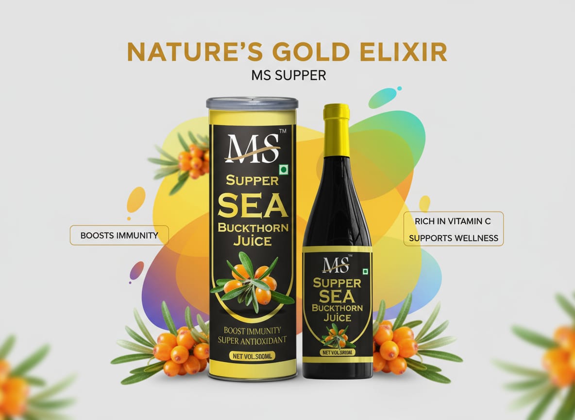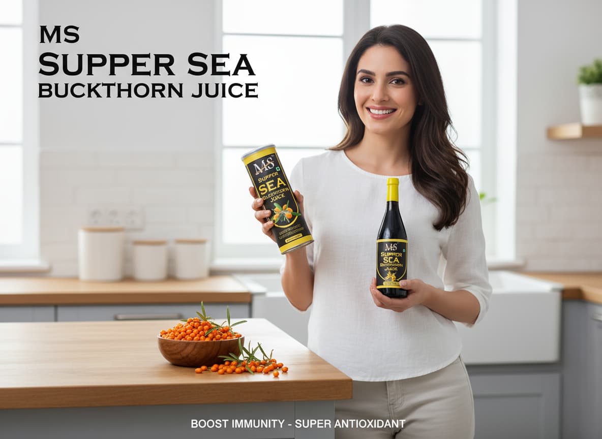MS Seabuckthorn Juice ek herbal superfruit based juice hai jo daily wellness routine, skin nourishment, energy balance aur overall body comfort ko support karta hai.